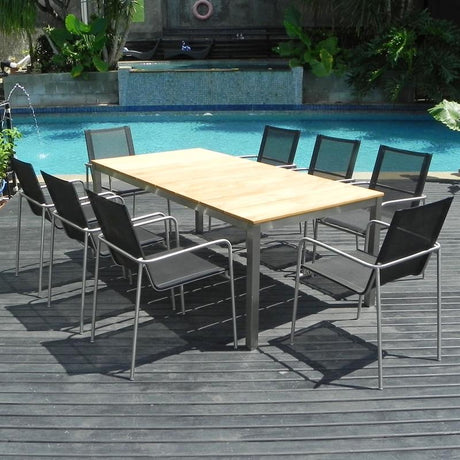 Fides Ausziehtisch 250/175 x 100 x 76 cm Teak Grade A mit Edelstahlgestell