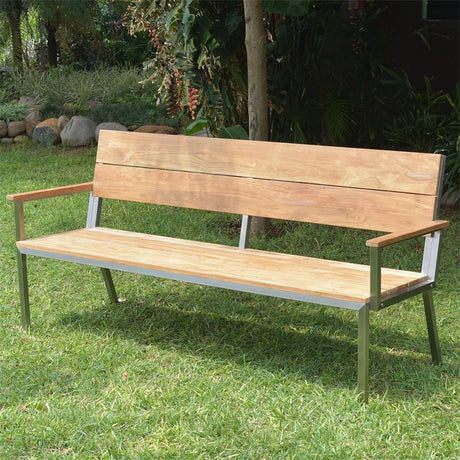 Makan Gartenbank mit Rücken- und Armlehne 192 Teak gebürstet mit Edelstahlgestell 192x63x90 cm