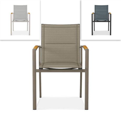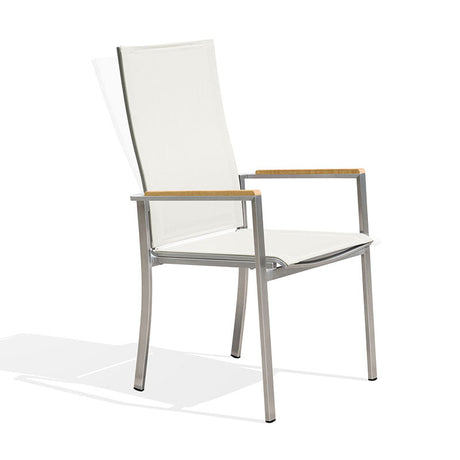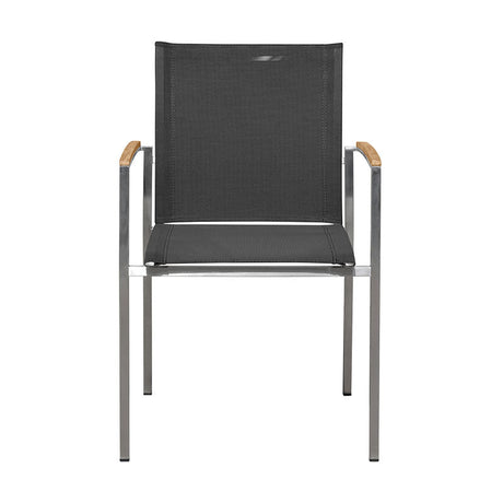 Alzette Stapelstuhl Eco Edelstahl mit Batyline und Teakholzarmlehne