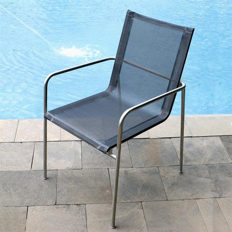 Alzette Stapelstuhl Edelstahl mit Batyline Bespannung