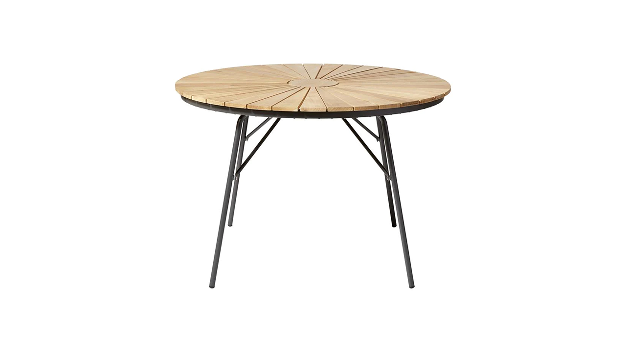 Table Ellen 110cm ronde en aluminium anthracite thermolaqué avec plateau en teck