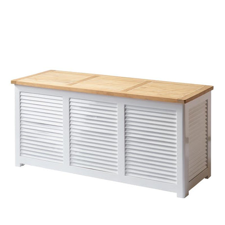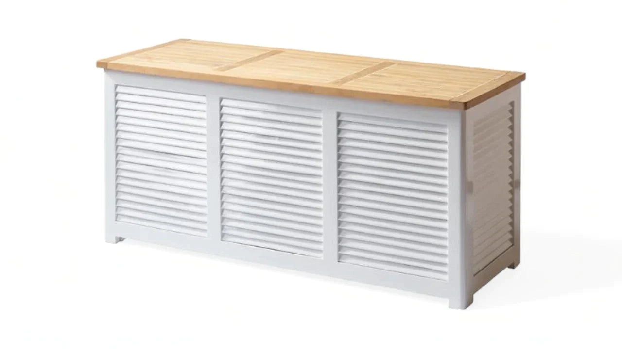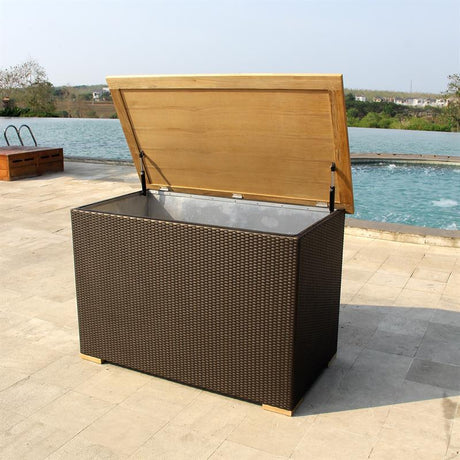 Petit coffre de jardin avec couvercle en teck imperméable et ferrures en laiton