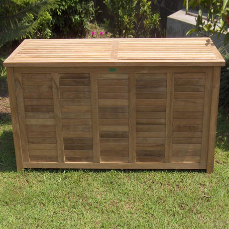 Coffre de jardin à couvercle plat grand 123 cm en teck avec ferrures en laiton