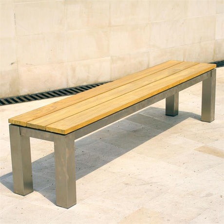 Banc de jardin Zilart sans dossier 190x45 cm - teck GRADE A NATUR brossé + structure inox