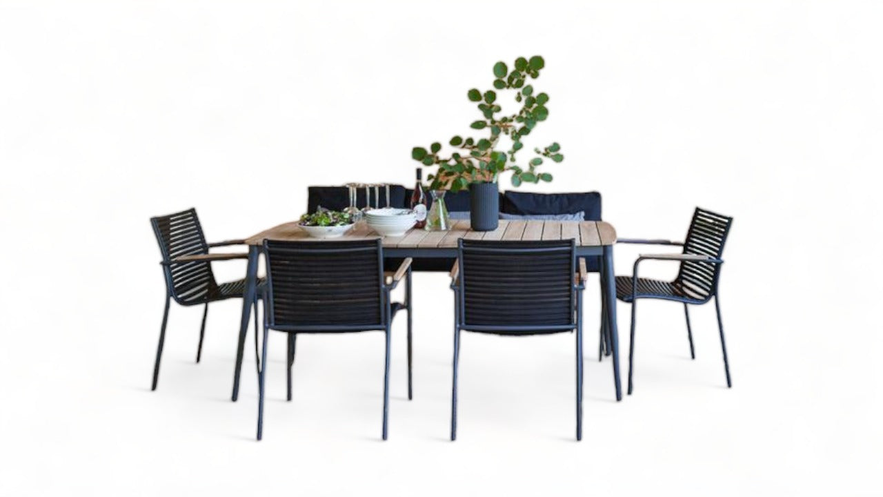 Table Mood Extreme 167x100cm rectangulaire en aluminium anthracite thermolaqué avec plateau en teck