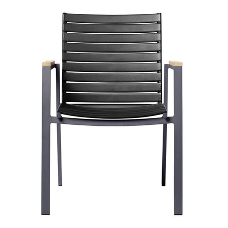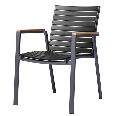 Chaise empilable Mood Extreme noir/aluminium thermolaqué anthracite avec accoudoirs en teck