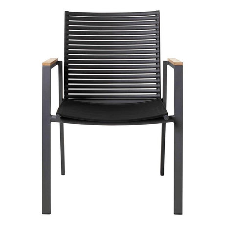 Chaise empilable Mood Air noir/aluminium anthracite thermolaqué avec accoudoirs en teck