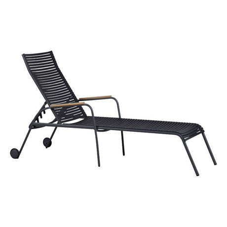 Chaise longue de jardin Mood en aluminium noir/anthracite thermolaqué avec accoudoirs en teck