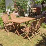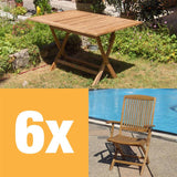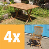 Comforteck Falt Set 130 bestehend aus Comforteck Klapptisch rechteckig 130 x 85 und Comforteck Faltstühlen mit Armlehnen aus Teak mit Edelstahlbeschlägen