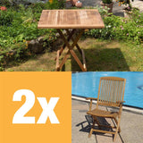 Comforteck Falt Set 85 bestehend aus Comforteck Klapptisch Platte 85x85 quadratisch Halbierte mit Picnic Mechanismus und Comforteck Faltstühlen mit Armlehnen Teak mit Edelstahlbeschlägen