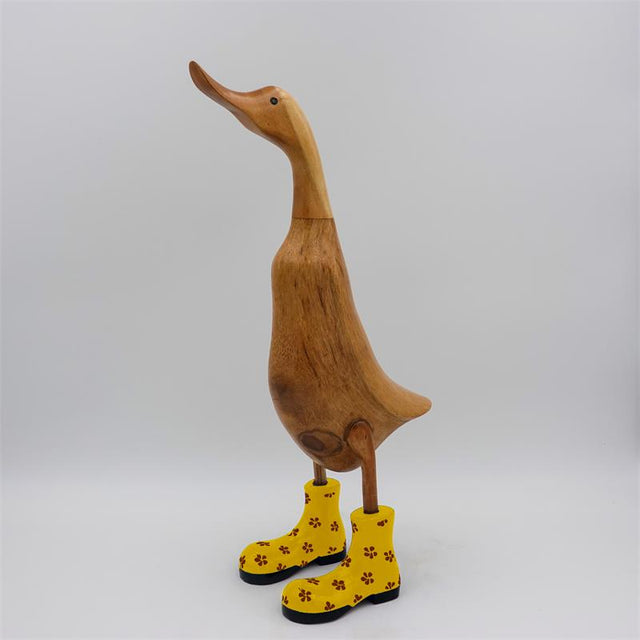 Ente »Dörte« groß braun aufrecht mit gelben Blümchenschuhen