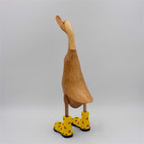 Ente »Dörte« groß braun aufrecht mit gelben Blümchenschuhen ist auf Lager und wird versandt, sobald es wieder verfügbar ist