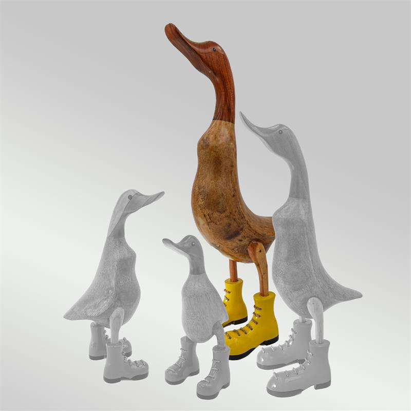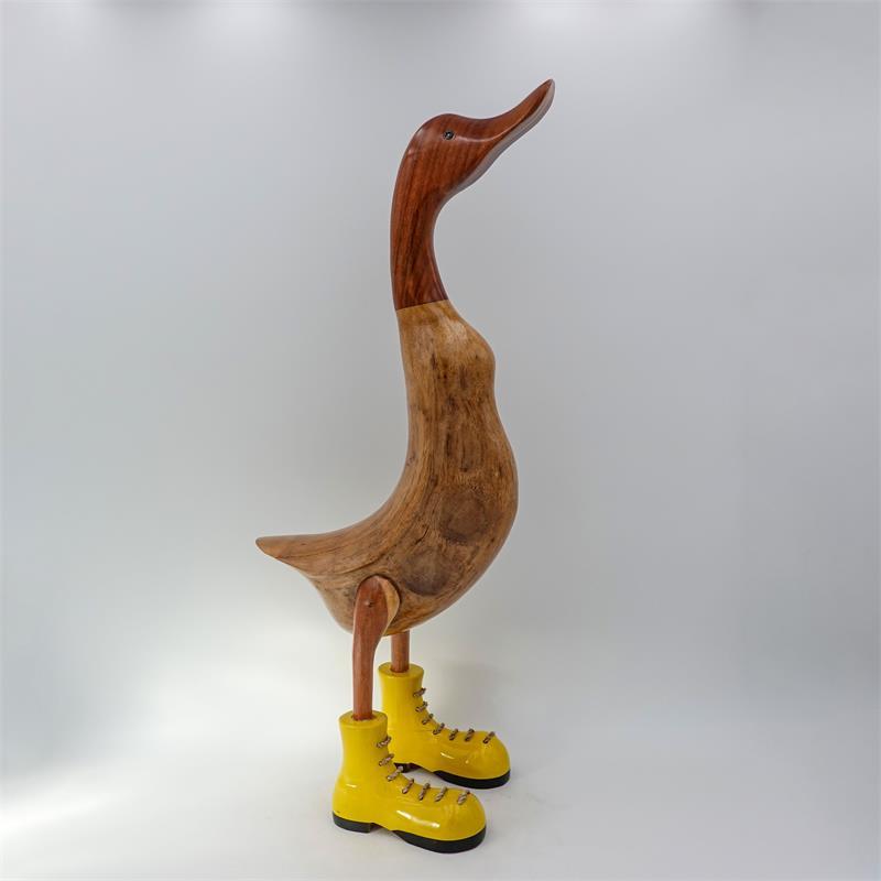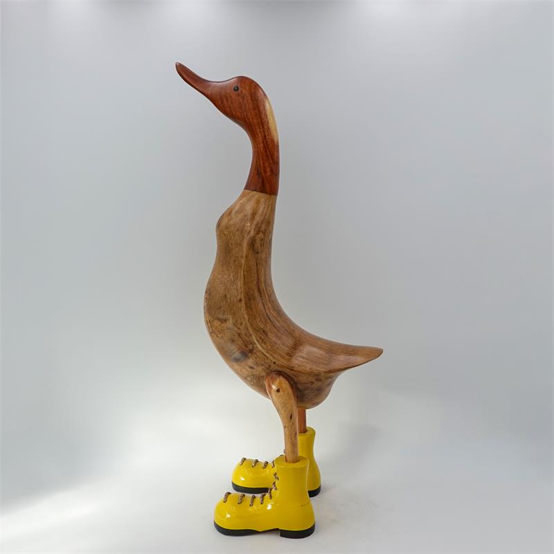 - Charmante Details: Mit ihren gelben geschnürten Stiefeln sorgt die Ente für einen fröhlichen Akzent in jedem Außenbereich.