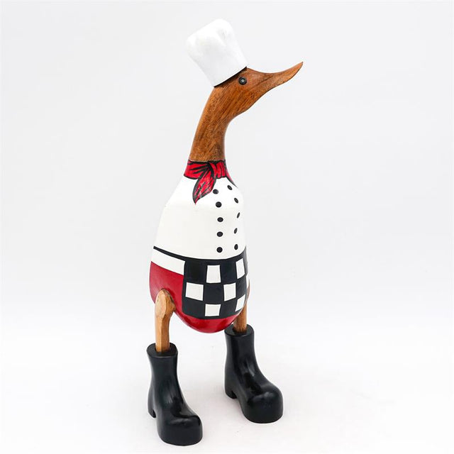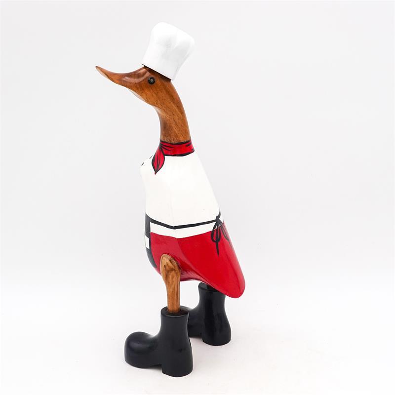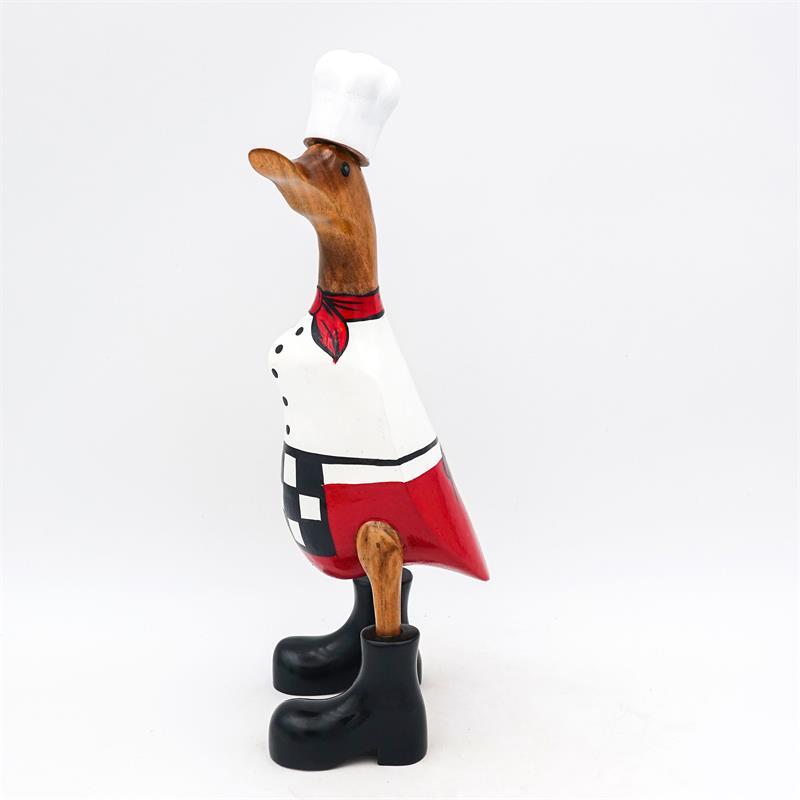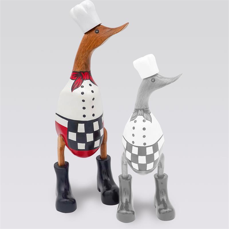 Bringen Sie einen Hauch von Spaß und Stil in Ihren Außenbereich mit der einzigartigen Ente Koch mittel »Jamie«. Diese liebevoll gestaltete Figur aus lackiertem Teakholz fügt sich perfekt in Ihren Garten, auf Ihren Balkon oder Ihre Terrasse ein. Mit einer Höhe von ca. 35 cm ist sie die ideale Ergänzung für jedes dekorative Arrangement.