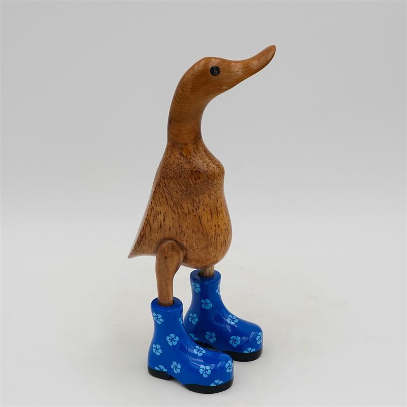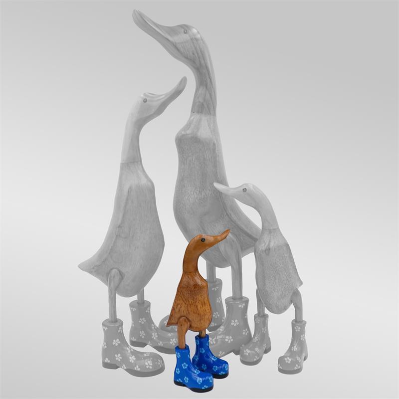 Ente »Rosalie« klein braun aufrecht blau mit Blümchen