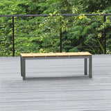 Fides Bank Set 150/2/2 bestehend aus Fides Esstisch 150 x 100 und 2 Fides Gartenbänke ohne Rückenlehne 130 x 45 mit 2 Fides Hockern/Beistelltischen 45 x 45 Teak mit Edelstahlgestell