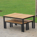 - Platzsparend: Die Bank lässt sich zwischen den Tischbeinen verstauen, während die Stühle stapelbar sind – ideal für platzsparende Aufbewahrung.