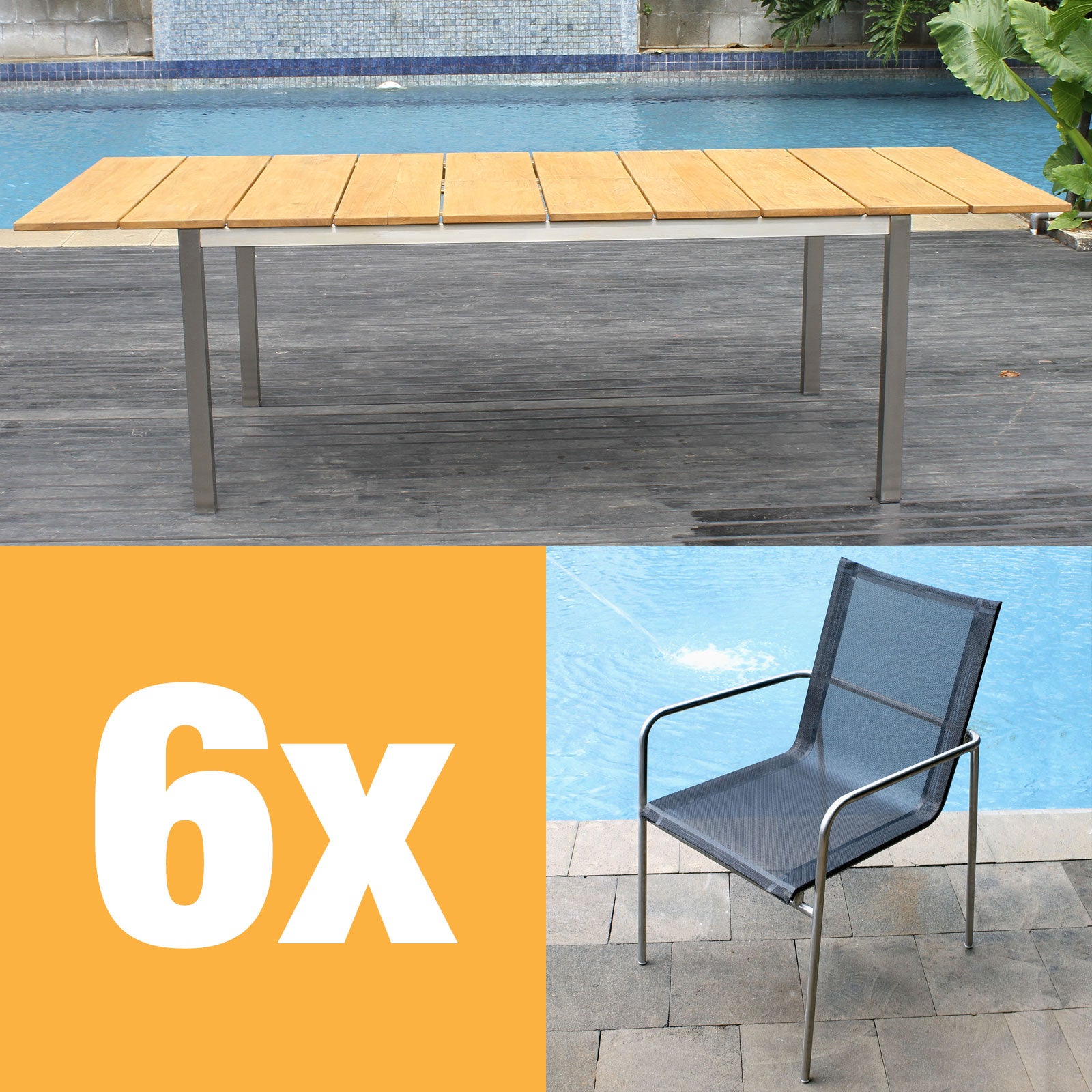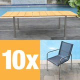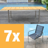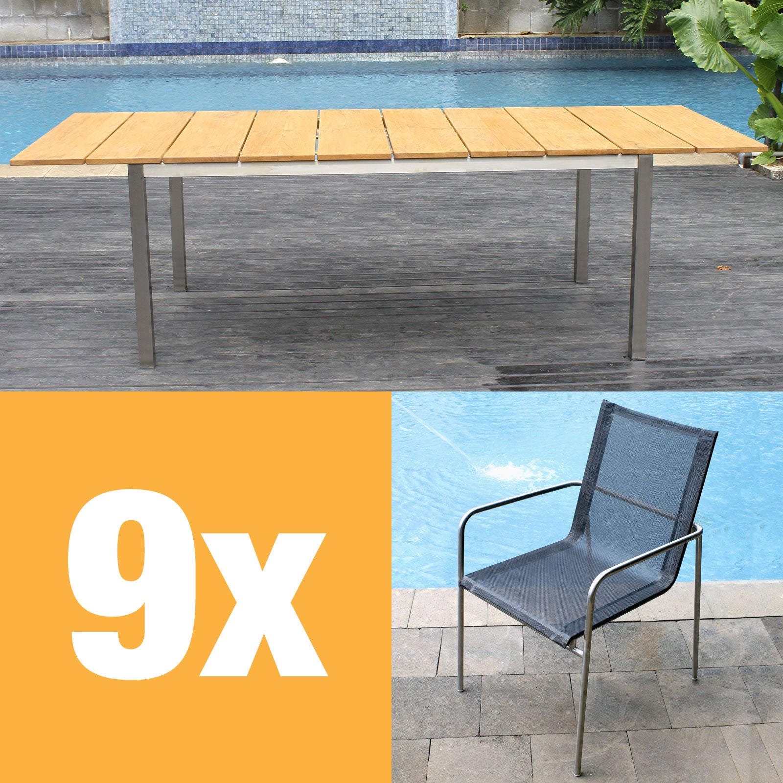 Fides Stapelstuhl Set 250 bestehend aus Fides Ausziehtisch 250/175 x 100 und Fides Stapelstühlen Edelstahl mit Batyline Bespannung