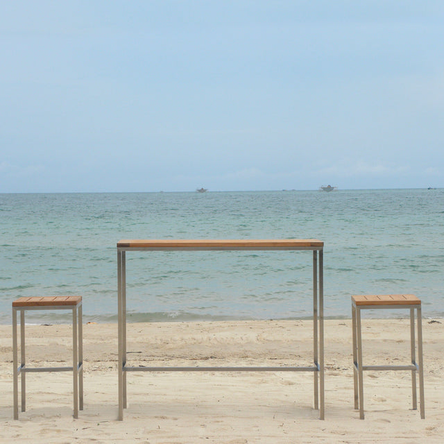 Beenden Sie Ihre Suche nach dem idealen Barmöbel und setzen Sie auf den Florence Bar Tisch Teak mit Edelstahl – ein Muss für jeden Gastgeber!