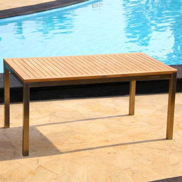 Florence Esstisch 160 x 90 x 76cm - Zertifiziertes Teak GRADE A + Edelstahlgestell