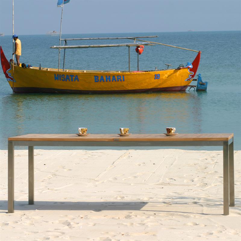 Florence Esstisch 210 x 90 x 76cm - Zertifiziertes Teak GRADE A + Edelstahlgestell