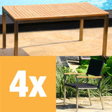 Florence Set 160 bestehend aus Florence Esstisch 160 x 90 und Florence Stapelstühlen Geflecht mit Edelstahl und Teak