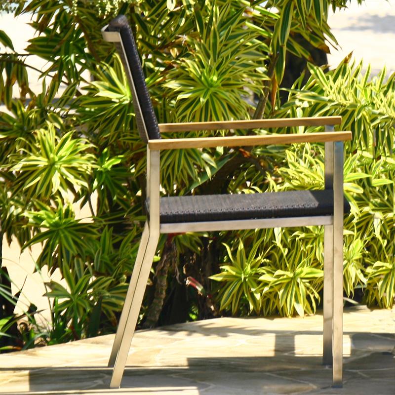 Florence Set 160 bestehend aus Florence Esstisch 160 x 90 und Florence Stapelstühlen Geflecht mit Edelstahl und Teak - 4 Florence Stapelstuhl Geflecht mit Edelstahl und Teak ist auf Lager und wird versandt, sobald es wieder verfügbar ist