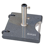 Entdecken Sie den Knirps Oasis Trolley-Granitsockel, ein Meisterwerk aus hochwertigem dunklen Granit, das sowohl stilvoll als auch funktional ist. Mit einem Gewicht von 50 kg bietet dieser Sockel die perfekte Stabilität für Ihren Sonnenschirm.