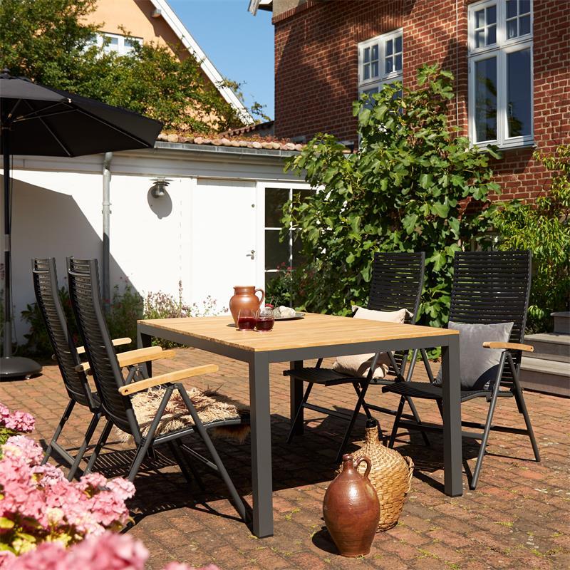 Mood Extreme Tisch 167x100cm rechteckig anthrazit Aluminium pulverbeschichtet mit Teaktischplatte ist auf Lager und wird versandt, sobald es wieder verfügbar ist