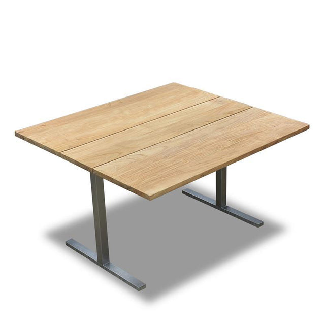 Planka Dining Lounge Tisch 120 x 120 x 69 cm Teak Grade A gebürstet mit Edelstahlgestell