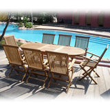 Raffles Set 200 bestehend aus Denver Ausziehtisch 200/150 x 90 und Raffles Faltstühlen mit Armlehnen Zertifiziertes Teak GRADE A + Messingbeschläge