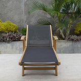 Rivera Liege flach mit Armlehnen - Teak GRADE A + Batyline + Edelstahlbeschläge