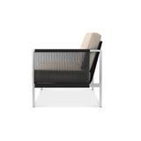- Edle Kordelverarbeitung: Die Armlehnen sind kunstvoll mit schwarzer Kordel umwickelt, was dem Loungesessel einen modernen Akzent verleiht.