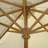 - Massives Teakholz: Mast und Sprossen bestehen aus hochwertigem Teak, das nicht nur stabil ist, sondern dem Schirm auch ein exklusives Aussehen verleiht.