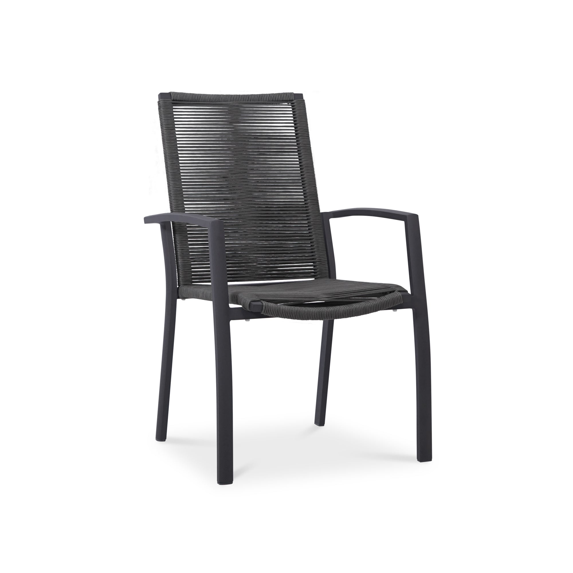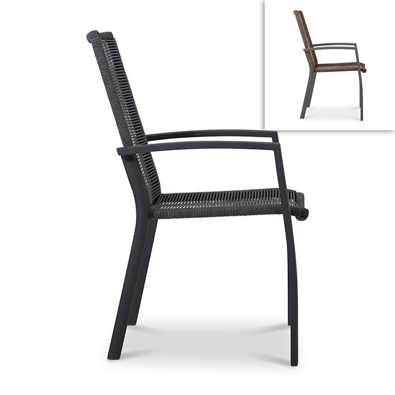 Yuma Stapelstuhl mit hoher Rückenlehne wetterfestes Rope + Aluminium pulverbeschichtet - Rope:Anthrazit/Alu:Anthrazit ist auf Lager und wird versandt, sobald es wieder verfügbar ist