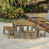 Entdecken Sie das elegante Zilart Bank Set Vintage, das aus einem stilvollen Esstisch und zwei dazu passenden Gartenbänken sowie zwei praktischen Hockern besteht. Dieses Set vereint Funktionalität und zeitloses Design und ist die perfekte Ergänzung für Ihren Außen- oder Essbereich.