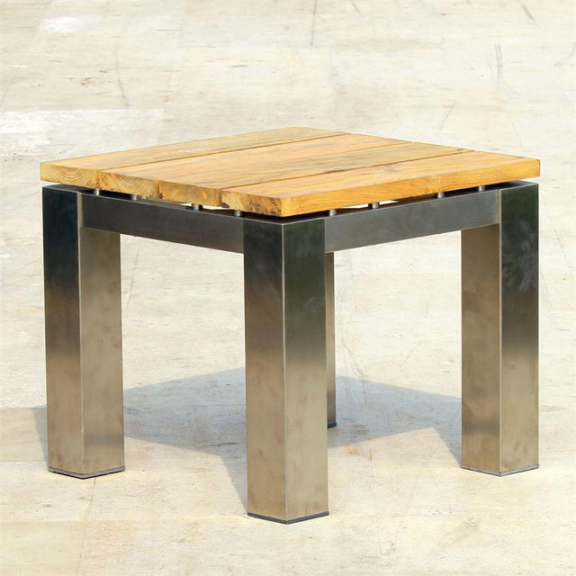 Zilart Beistelltisch/Hocker 50 x 50 x 45 cm - Teak GRADE A NATUR gebürstet + Edelstahlgestell