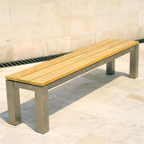 Zilart Gartenbank ohne Rückenlehne 190x45 cm - Teak GRADE A NATUR gebürstet + Edelstahlgestell